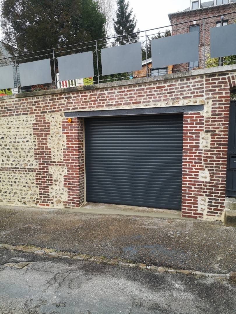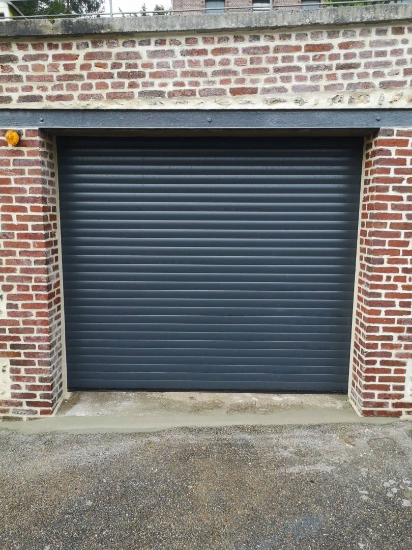 Réalisation d'une pose de porte de garage en aluminium gris anthracite sur Rouen 76 .