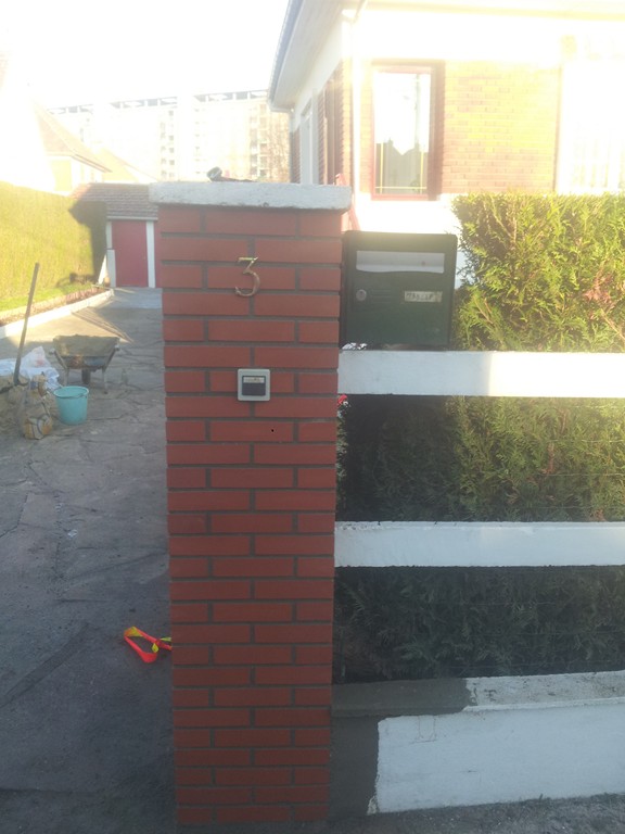 Dans le cadre d'un remplacement de barrière, les anciens piliers en brique trop vetuste on du être déposés et remplacé par des nouveaux piliers en brique.