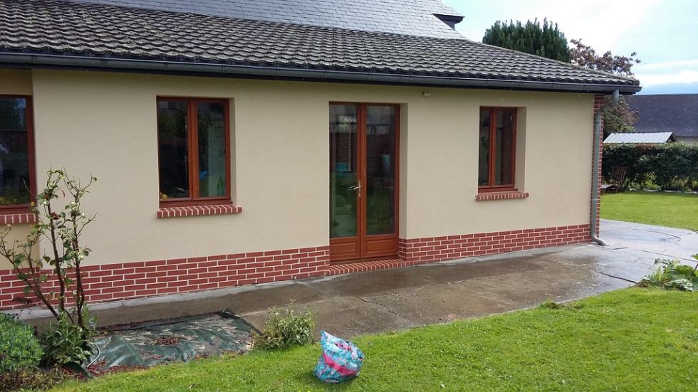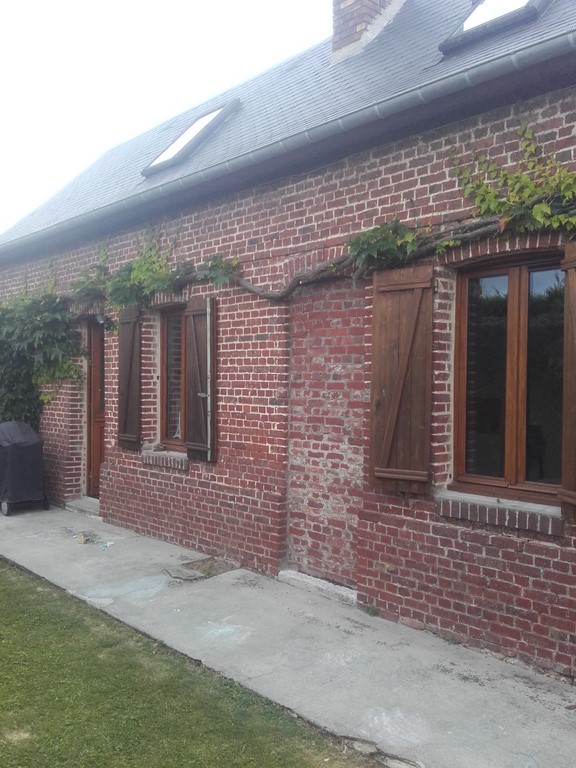 Pour cette Maison en briques situé à Illeville sur Monfort proche Pont Audemer, la société Mgr Construction à nettoyé et déjointé les façades de la partie ancienne en briques puis sablé la partie extension qui avait été peinte par le passé.